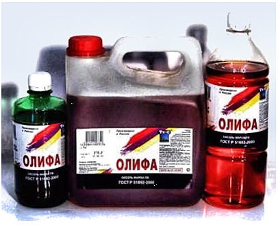 Олифа — пленкообразующее вещество на основе натуральных растительных масел льна, сои, подсолнечника.