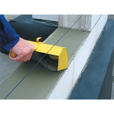 Плавным закруглением прута армируйте углы стен. При нарезании штроб от внешнего края блоков отступают около 60 мм. Над дверными и оконными проемами с внутренней и внешней внешней стороны кладки устанавливают металлические уголки размером от 50 до 100 мм (взависимости от ширины проема). Затем вырезают паз в стене и смазывают его клеевым составом, затем устанавливают металлический уголок рамером в длину проема, над которым его устанавливают.